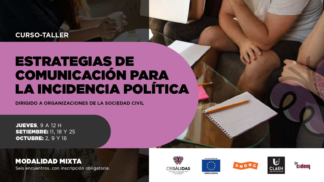 El jueves 11 de setiembre se realizó la primera jornada del curso-taller sobre comunicación para la incidencia política, organizado en el marco del Proyecto Crisálidas. Esta primera instancia se desarrolló de forma virtual y congregó a representantes de varias organizaciones de la sociedad civil, provenientes de diferentes departamentos del país.