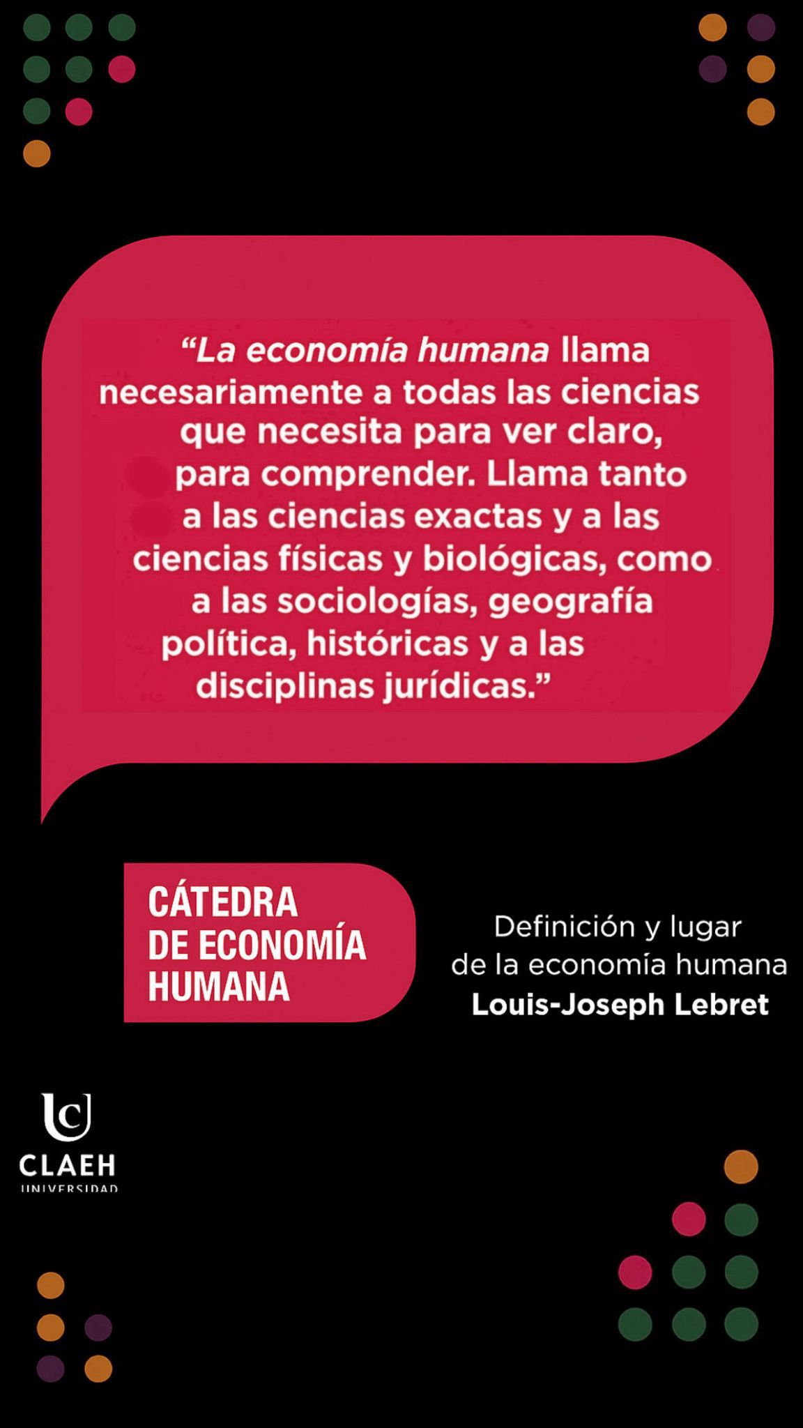En el marco de los 60 años del fallecimiento de Louis-Joseph Lebret, la Cátedra de Economía Humana de la Universidad CLAEH elaboró una serie de materiales especiales para su difusión en redes sociales.
