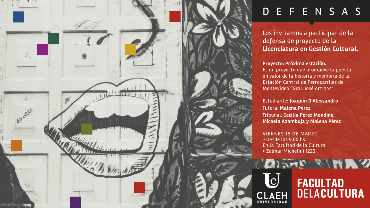 El viernes 15 de marzo se defenderá a las 9 horas, el proyecto de egreso “Próxima estación”, del estudiante Joaquín D’Alessandro, para la obtención del título de grado de la Licenciatura en Gestión Cultural.