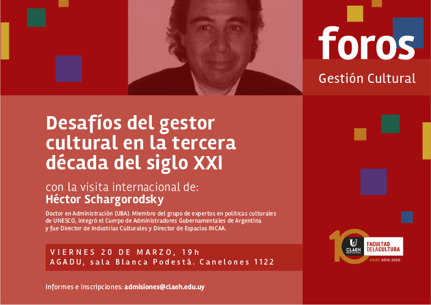 En el marco del curso “Gestión de teatros públicos” que realiza la Facultad de la Cultura, llega a Montevideo, Héctor Schargorodsky, para conversar sobre "Los desafíos del gestor cultural en la tercera década del siglo XXI".