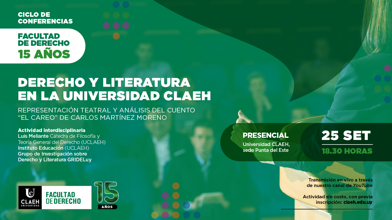 En el marco de los 15 años de la Facultad de Derecho de la Universidad CLAEH, invitamos a participar de la conferencia “Derecho y Literatura en la Universidad CLAEH. Representación teatral y análisis del cuento El careo de Carlos Martínez Moreno”.