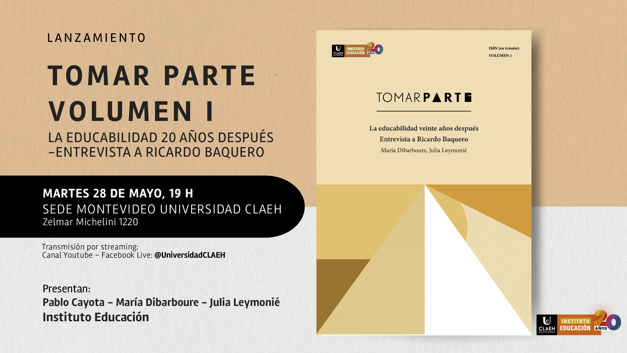 Frente a los desafíos educacionales globales, regionales y nacionales, el Instituto Educación de la Universidad Claeh decide no mostrarse indiferente públicamente y tomar parte. La serie TOMAR PARTE que este martes 28 de mayo presenta su volumen I explicita posturas, marca caminos, elige opciones, siempre sobre la base de la ética profesional, la honestidad intelectual y el humanismo que identifica a la Universidad Claeh