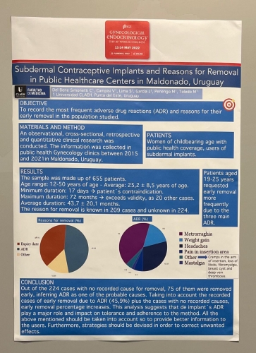 La Dra. Chiara del Bene, egresada de la Universidad CLAEH, en compañía de la decana de la Facultad de Medicina, Dra. Selva Lima, presentaron en el 20° Congreso Mundial de Endocrinología Ginecológica un trabajo de investigación sobre implantes anticonceptivos.