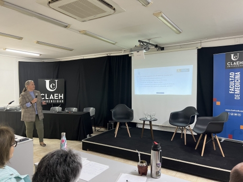 La Dra. María Noel Grunert, residente de la Especialización de Traumatología y Ortopedia de la Facultad de Medicina UCLAEH, realizó una exposición sobre fracturas por fragilidad ósea.