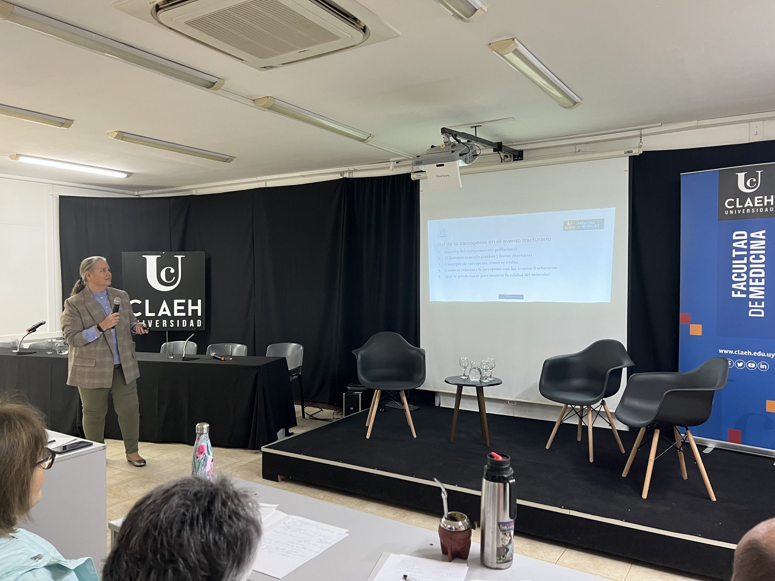La jornada finalizó con un panel de discusión en el que participaron el Dr. Luigi Cavalieri, especialista en reumatología y en osteología, la Dra. Soledad Estafan, especialista en ginecología endocrinológica y reproductiva, el Dr. José Fregeiro traumatólogo, subdirector de la Especialización en Traumatología y Ortopedia de la Facultad de Medicina UCLAEH, la Dra. Karina Machado, especialista en pediatría y diplomada en Nutrición Pediátrica, el Dr. Hugo Núñez, exdecano de la Facultad de Medicina UCLAEH, especialista en fisiatría y actual asesor de la Dirección del Centro de Rehabilitación de Maldonado, el Dr. Daniel Rienzi, traumatólogo, director de la Especialización en Traumatología y Ortopedia de la Facultad de Medicina UCLAEH y la Dra. Diana Wirusanky, especialista en cardiología dedicada al diagnóstico de salud ósea.