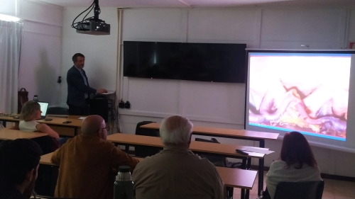 El Dr. Fernando Martínez, especialista en neurocirugía, profesor titular de Anatomía de la Facultad de Medicina UCLAEH y profesor agregado de neurocirugía del Hospital de Clínicas, abrió la jornada presentando la “Relación anatómica de áreas