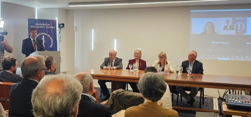 La ceremonia contó con la presencia de la ministra de Salud Pública, Cristina Lustemberg, quien felicitó a quien presidirá la Academia en el período 2026-2027: Óscar Noboa.